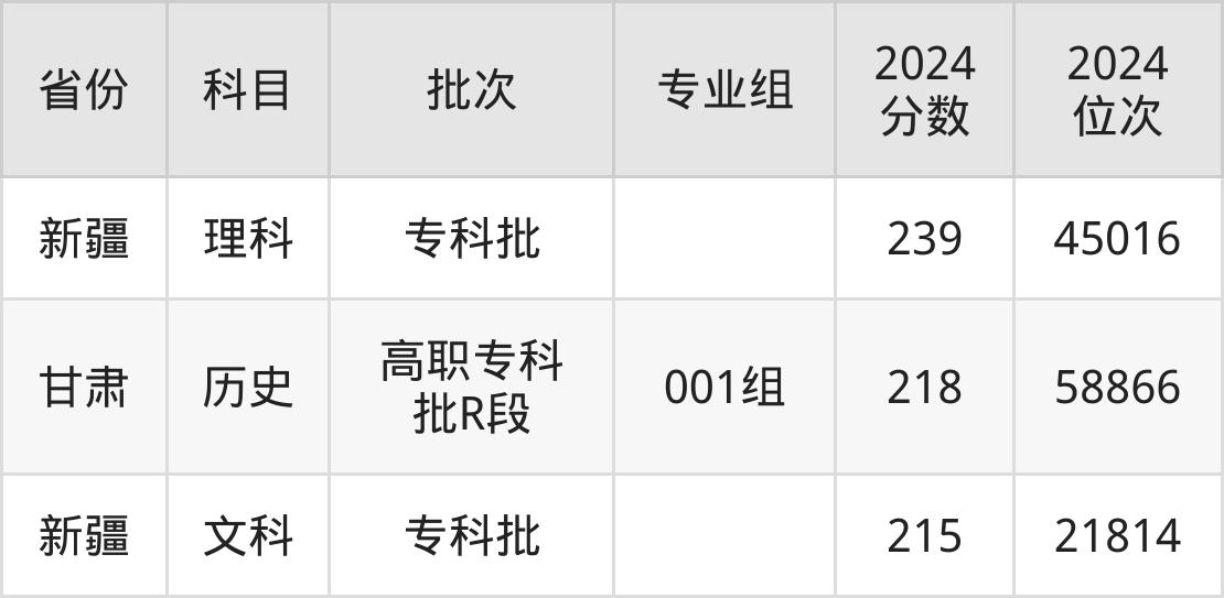 | 学校名 | 招生 省份 | 科目 | 2024 最低分 | 2024最 低分位次 |